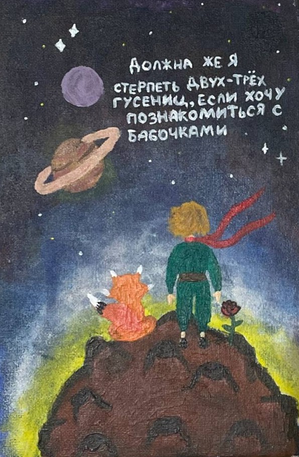 Acrylic Painting. Inspired by Antoine de Saint-Exupéry’s classic tale, this painting shows the themes of friendship, dreams, and responsibility.